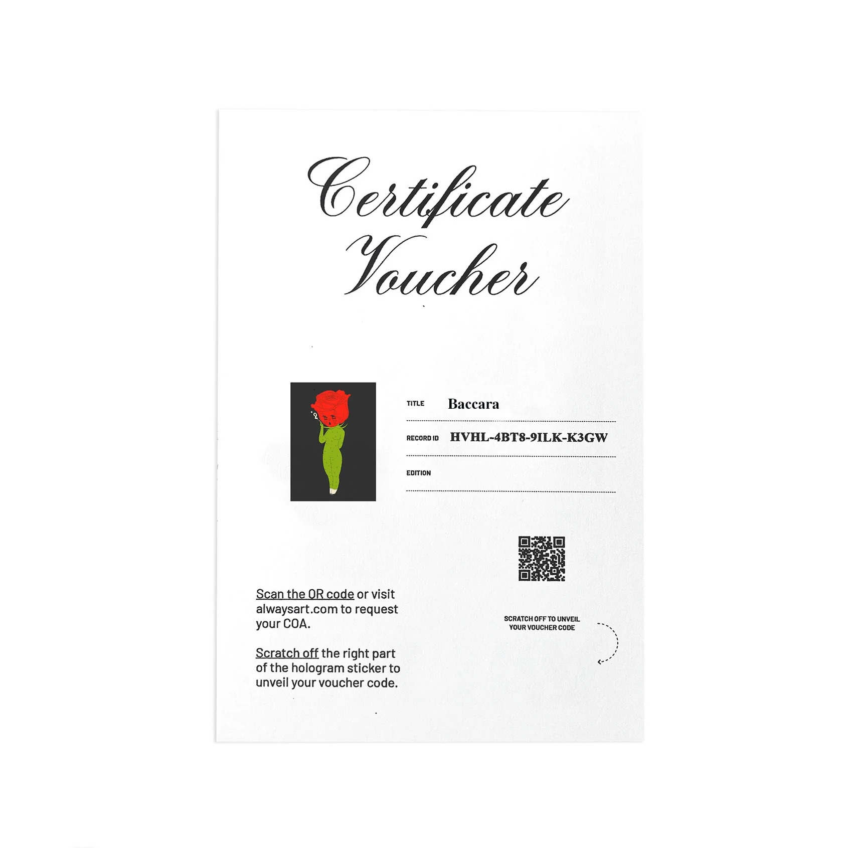 Each print will be signed, numbered and will include a voucher to register your work and receive your official Certificate of Authenticity by Always Art.