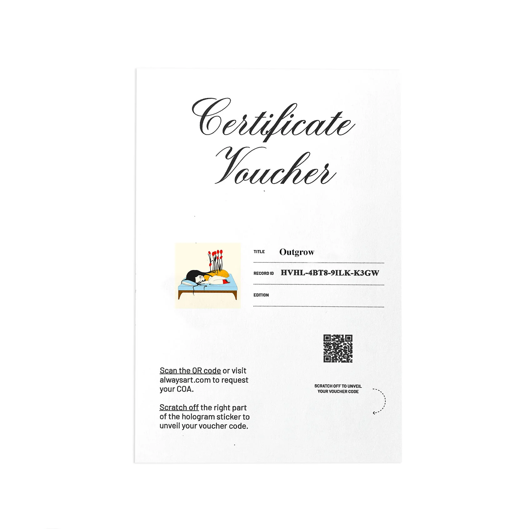 Each print will be signed, numbered and will include a voucher to register your work and receive your official Certificate of Authenticity by Always Art.